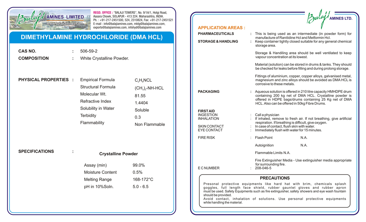 | Di-Methyl Amine Hydrochloride | (DMA HCL) | View |