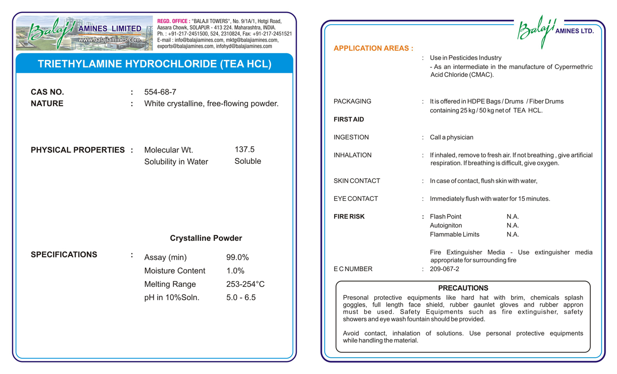 | Tri-Ethyl Amine Hydrochloride | (TEA HCL) | View |