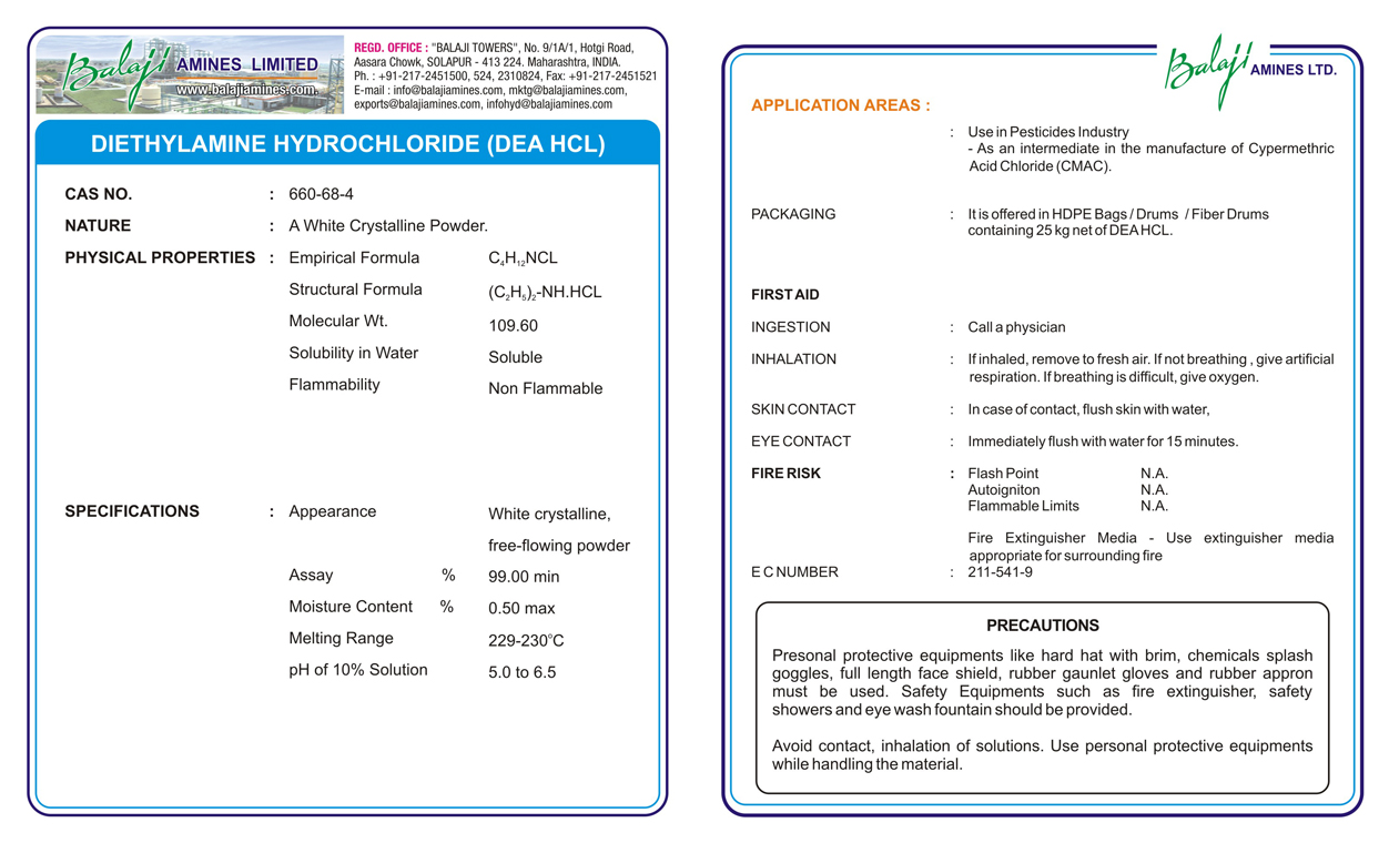 | Di-Ethyl Amine Hydrochloride | (DEA HCL) | View |