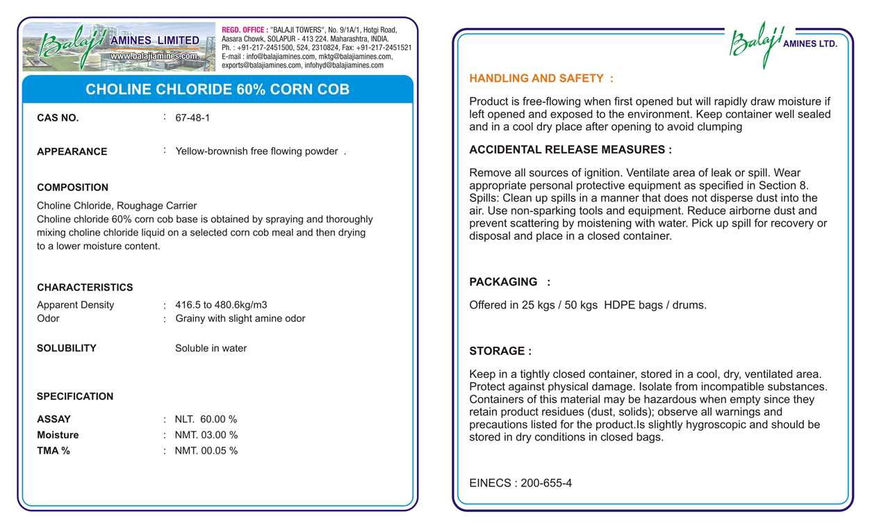 | Choline Chloride 60% Corn Cob | (Corn Cob) | View |