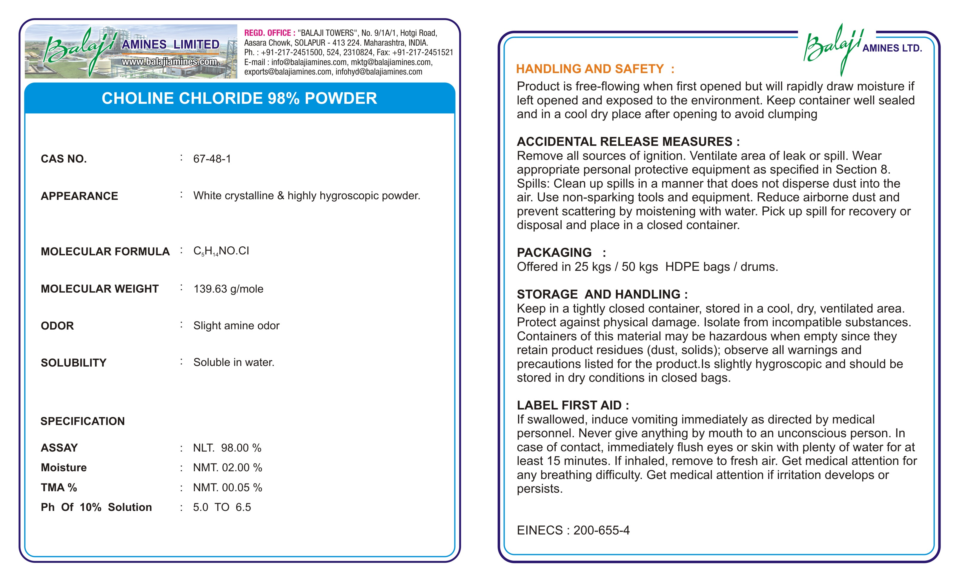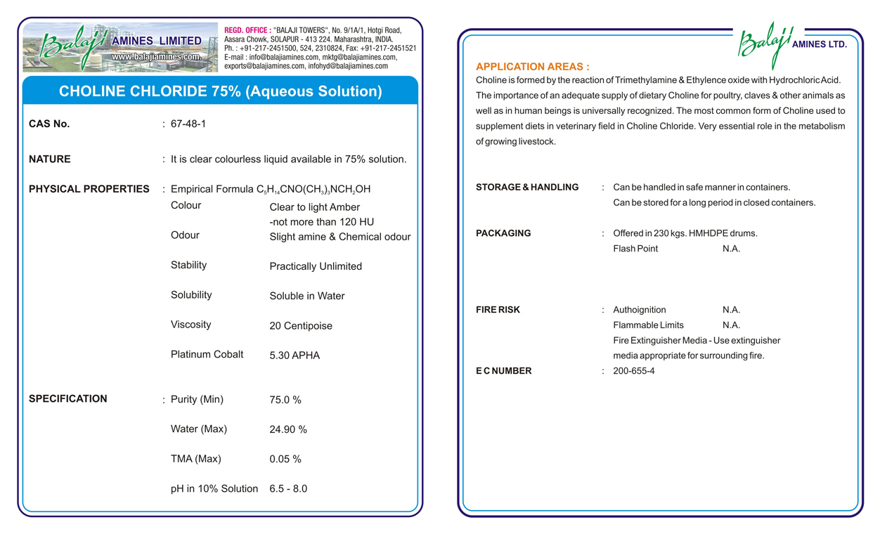 | Choline Chloride 75% | (Aqueous Solution) | View |