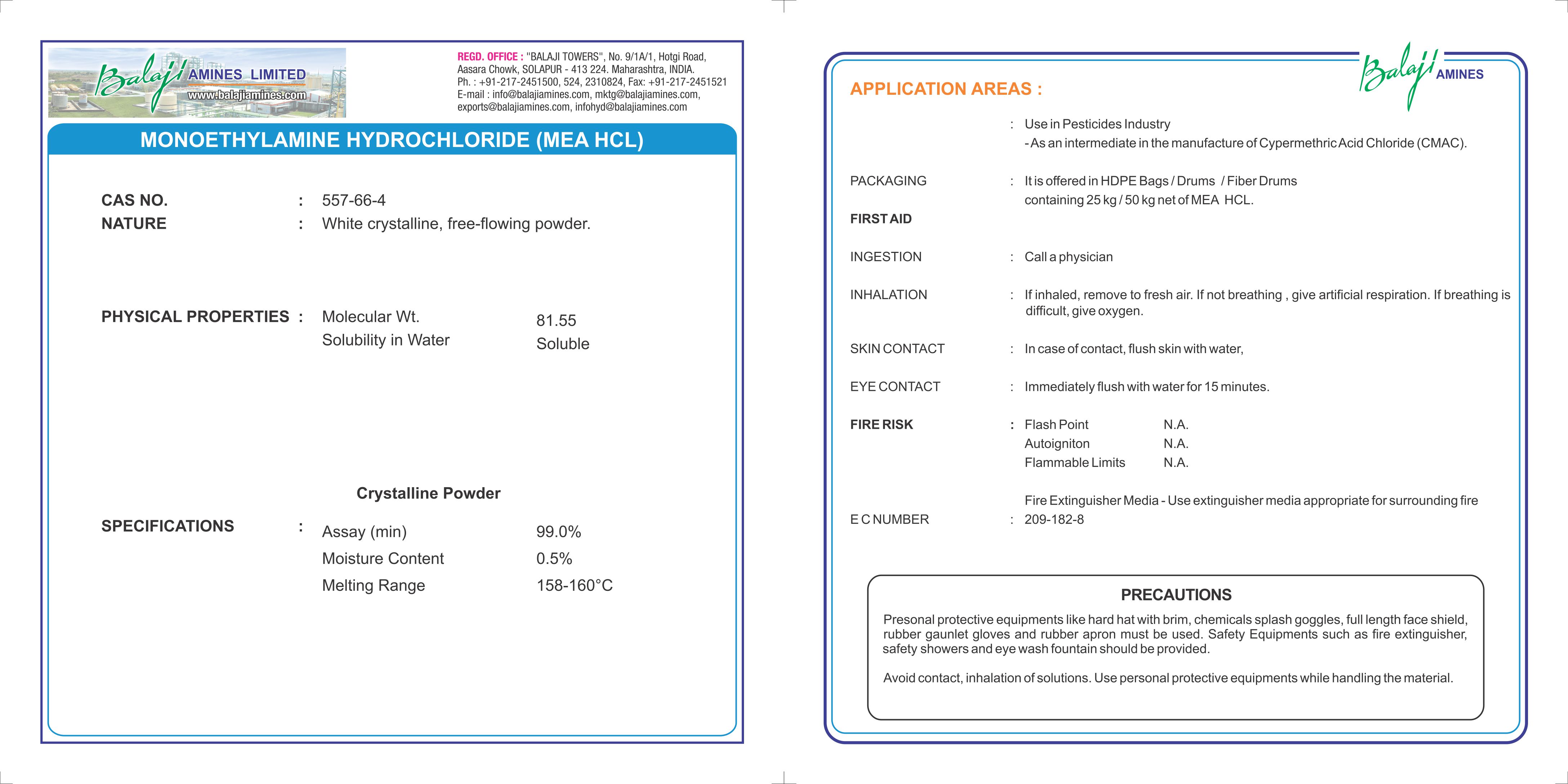 | Mono-Ethyl Amine Hydrochloride | (MEA HCL) | View |